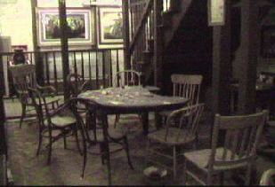 | Directly below the stage is the Poker Room. Here the longest poker game in western history occurred. It was a house game and players had to buy a $1,000 minimum in chips for a seat in the game. The game ran continually for 8 years, 5 months and 3 days. Today that poker table still stands as it was left, with its chairs on the dirt floor. |